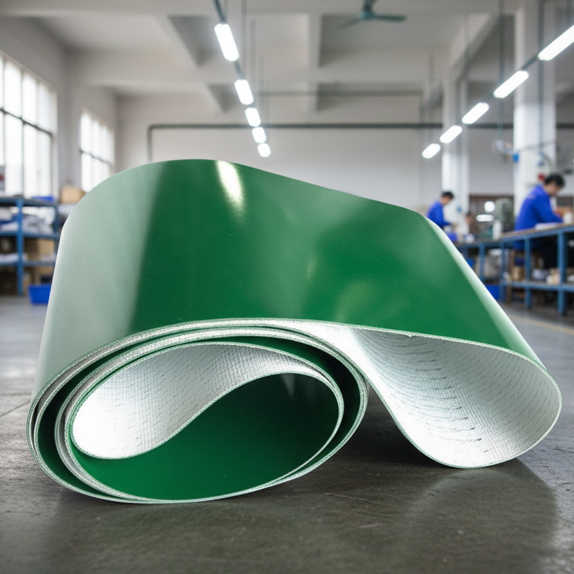 Tags Förderband, Förderband grün, Kunststoffband, PVC-Fördergurt